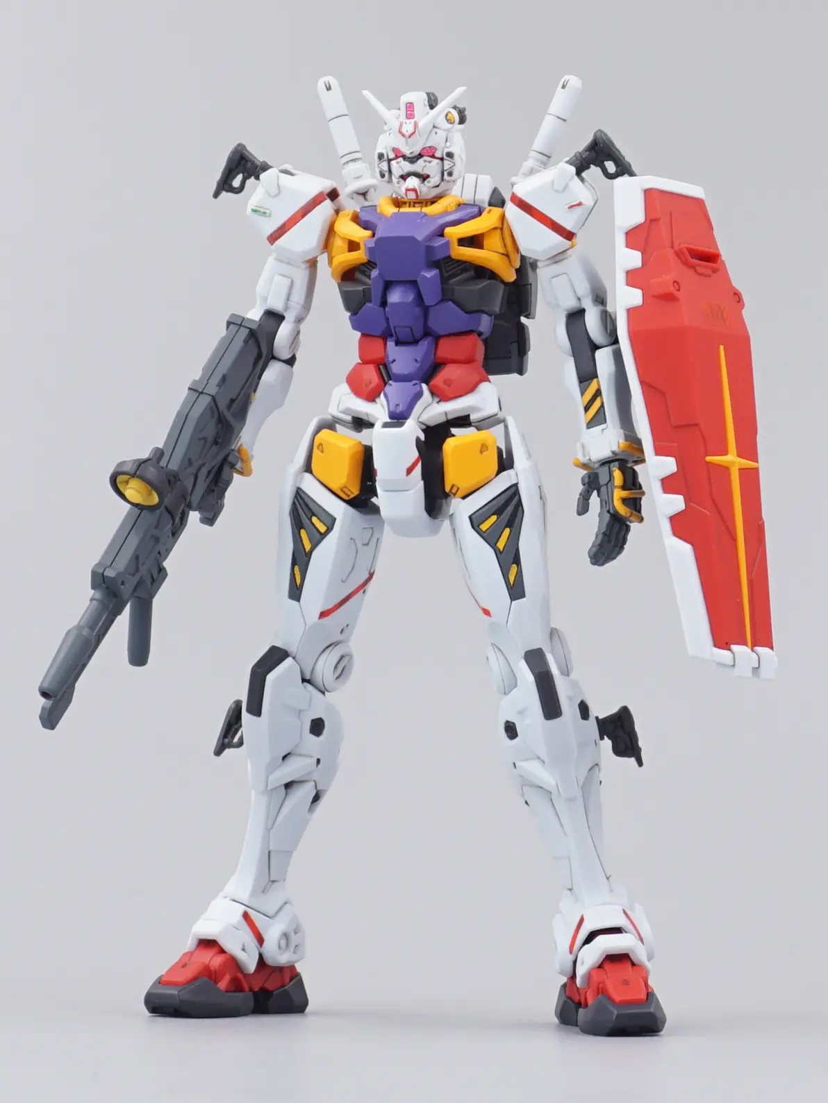 一个槽点无限多的套件首先原设定大红的机战风格,断了一样的腰和粗壮的大腿整体配色和身材都不好看,外甲莫名其妙的透明件套件更是有很多反人类设计,比如肩膀和跨的球关节,直接导致手臂不举开腿劈叉老FA最良心的手型也只剩一对左右合的握持手最搞笑的是,从老FA的废件里面拿出来握拳和开手,居然还要修一下才能装上而且一个武器都没有,和老FA风格没有一个搭得上的,混搭也很困难把这个叫做新