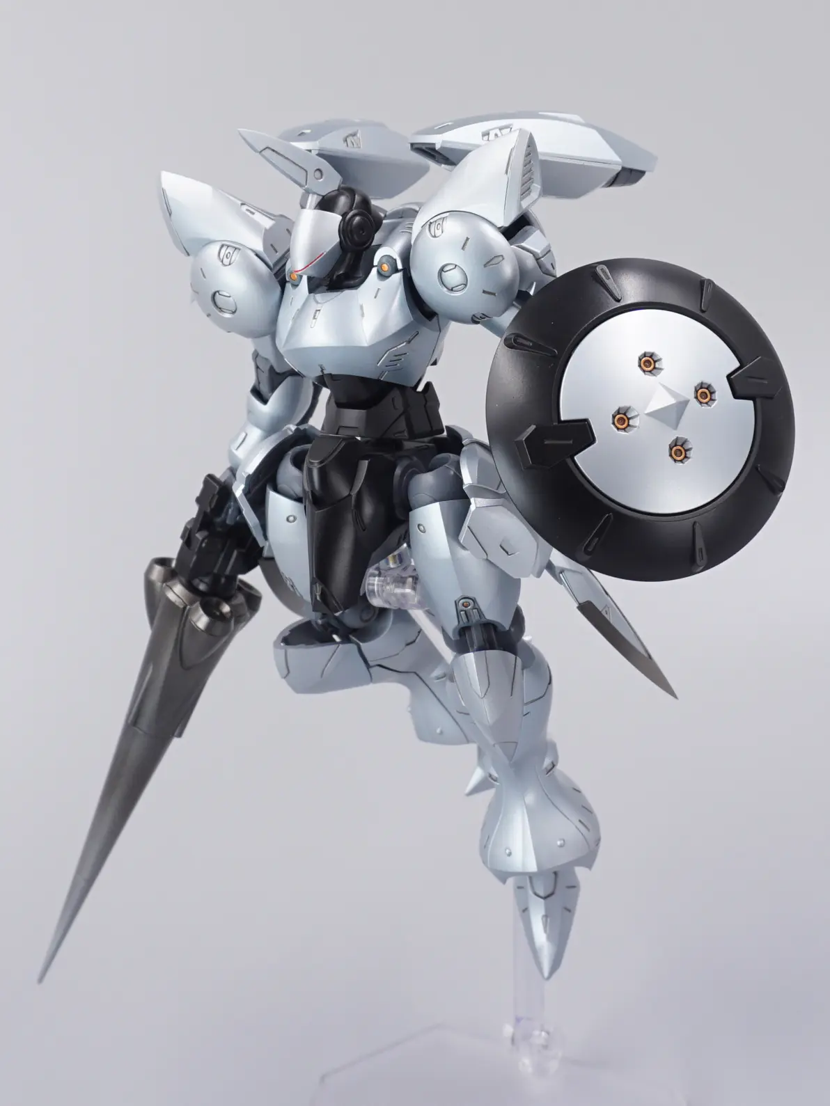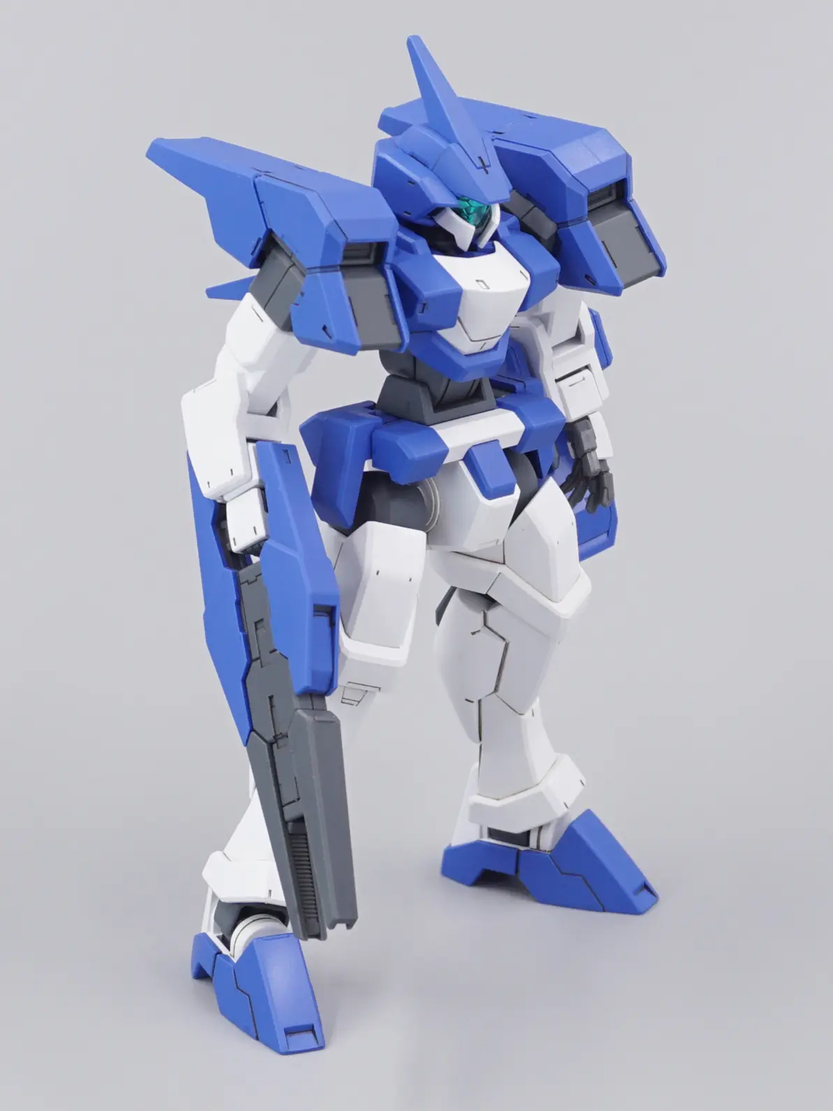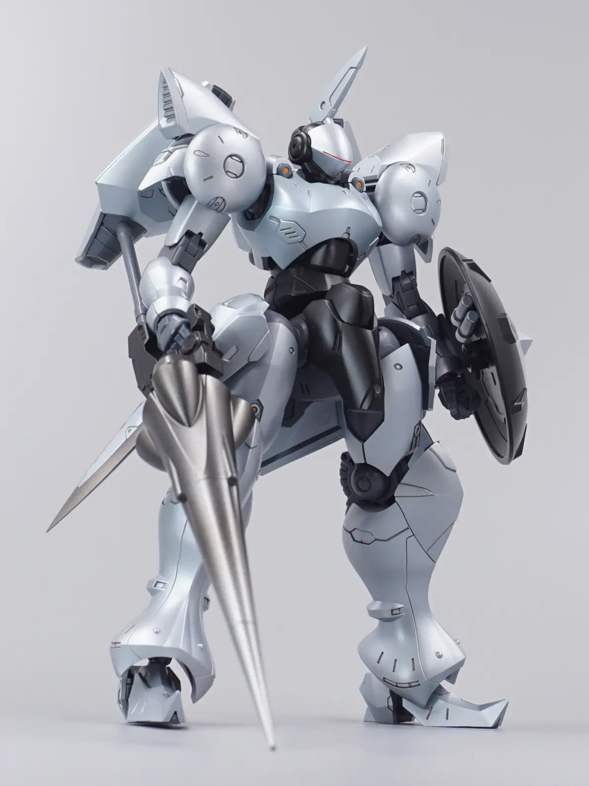 骑士机就是要盔甲风买的青灰色版本,一开始想做飞甲兵的亮银色,后来P了个ludens的配色但在黑底红条的面罩启发下,想起了这个绝佳的ROBOCOP老登色本体灰补土→郡士银色强遮盖→匠域秘银+少量透明蓝调味