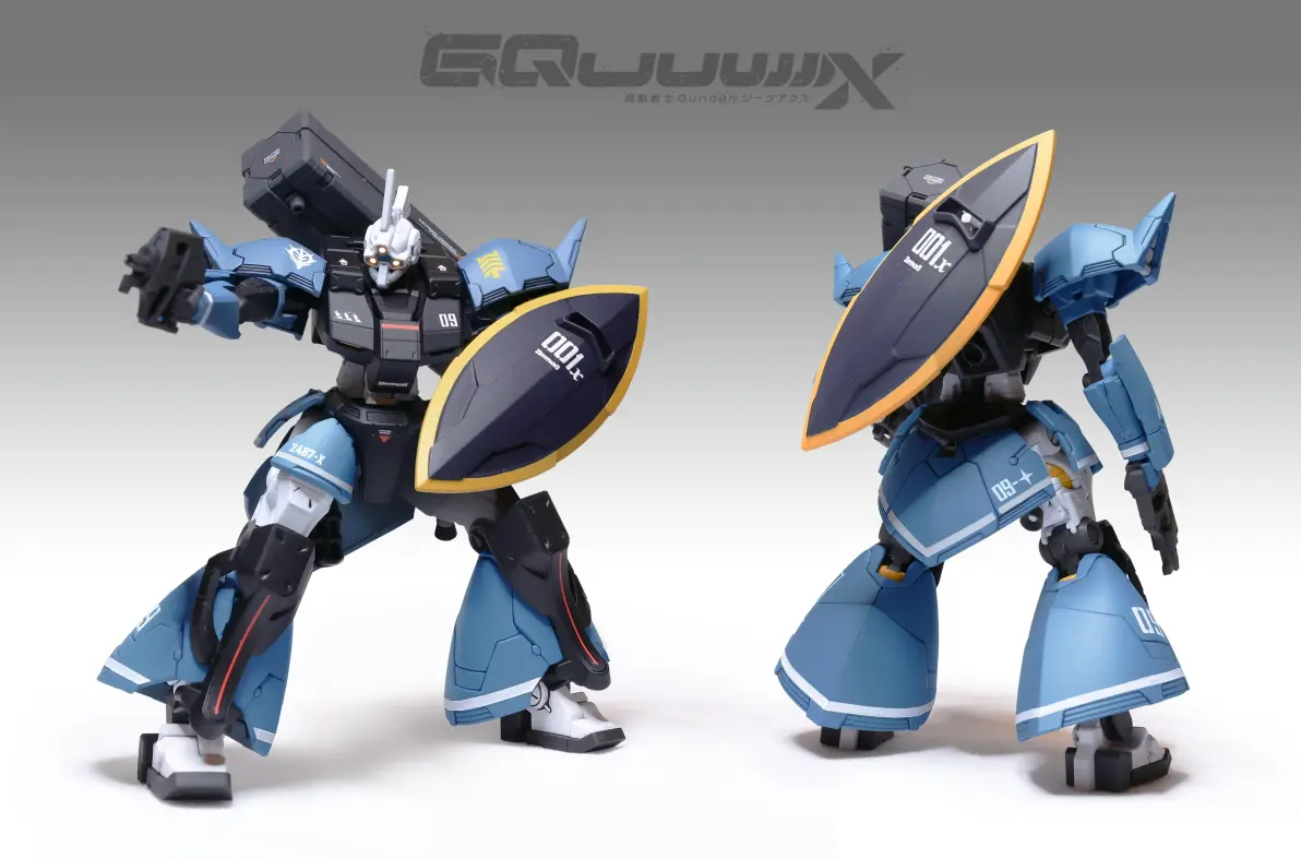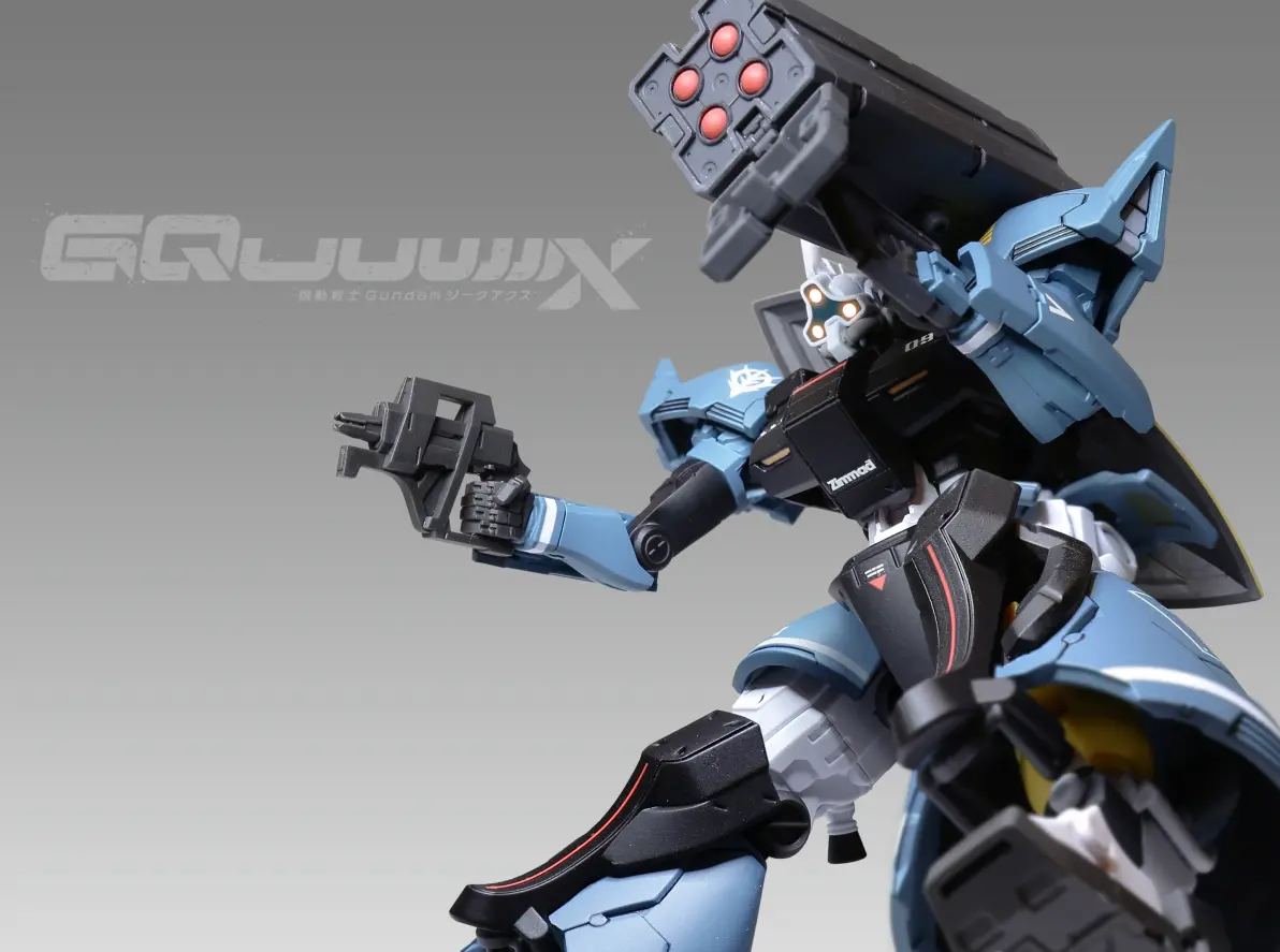 用HG GQ格鲁古古做基础,因为体型相对较小,所以用G-FRAME系列的勇士外甲套上去刚刚好,再加上境界战机的4连导弹舱作为武器,组成尤玛·莱特宁专用高机动型勇士。