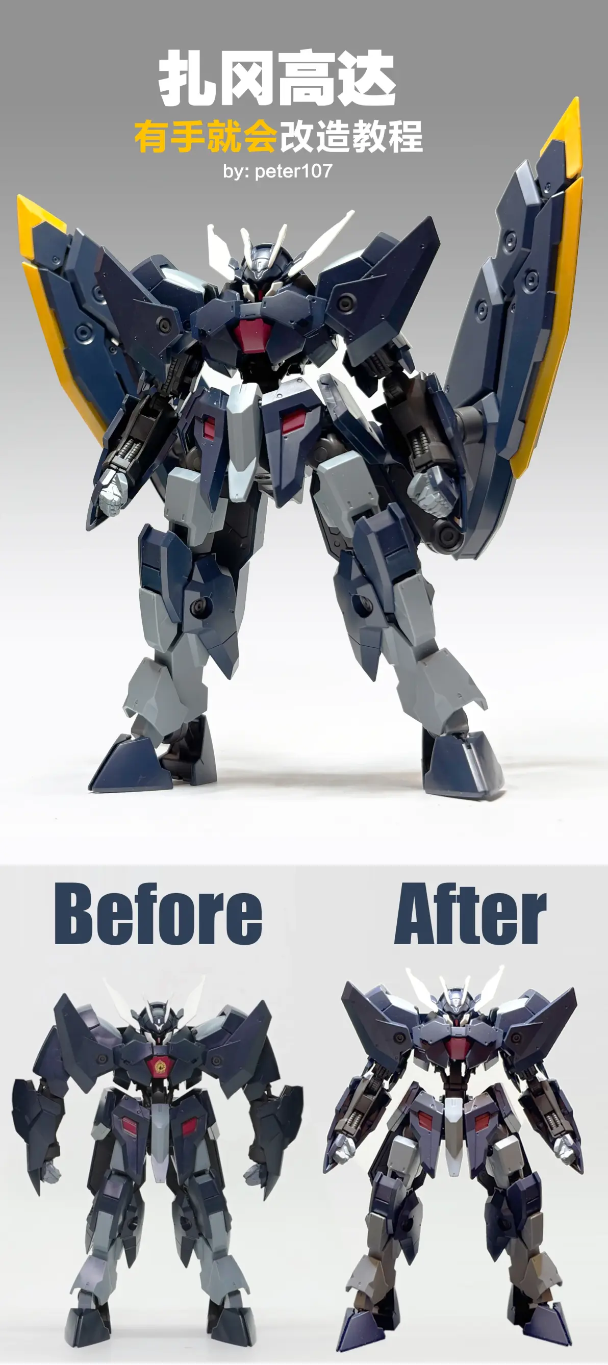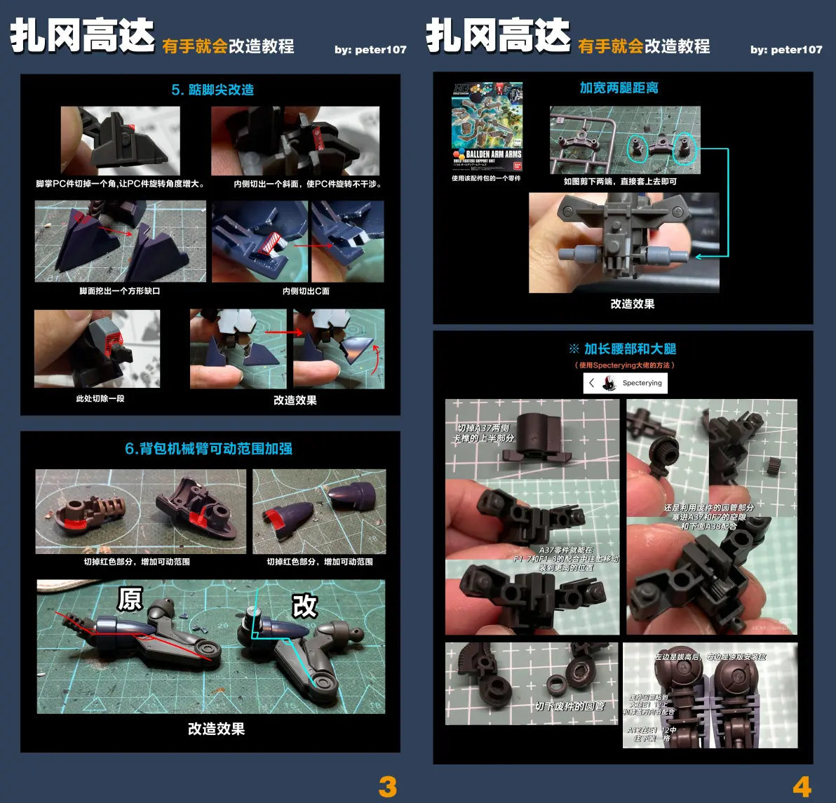 基本无需借助额外零件,直接原盒素材即可完成改造。P4我是贪方便用了配件包的,如果自己打桩利用流道延长胯部就可以达成完美原盒改造。PS:特别鸣谢 @Specterying 大佬,学习了他的延长腰部和大腿的绝佳方法。