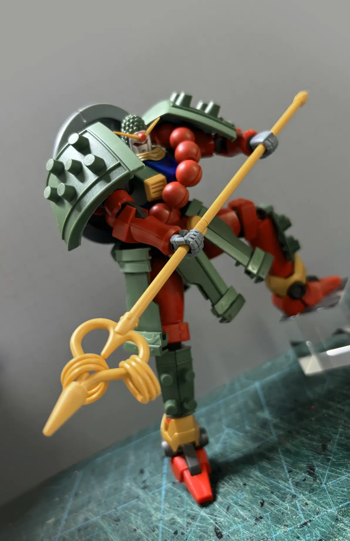 由于这段时间特别忙,都不敢参加群赛正选组,因为怕自己鸽了会拖队友后腿。快到截稿前几天才有一点空闲,就匆忙素组了一个MGSD扎古,投个应援组重在参与一下。普通状态外挂强化装备形态可以背在前面,也可以收纳在背包上。胸口可以打开眼珠可以顺着轨道灵活转动到任何地方。编不下去了,以下是改造过程。本体使用Q版扎古扭蛋为基础进行改造,武器是HG扎古大炮和境界战